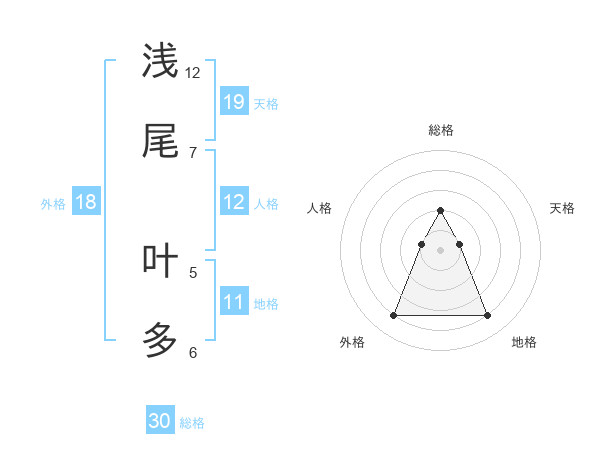 浅尾 叶多さんの総格は30画の2点!