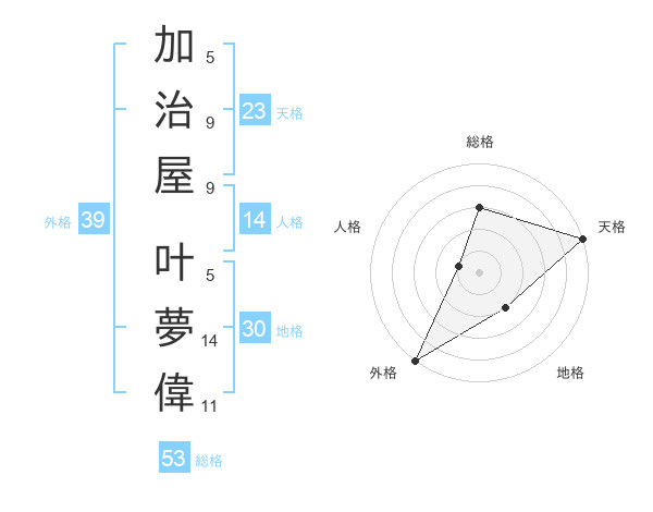 加治屋 叶夢偉さんを姓名の画数から五運を鑑定