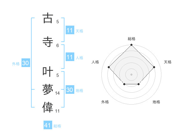 古寺 叶夢偉さんの総格は41画の5点!