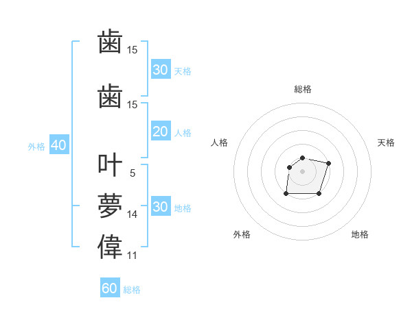 歯歯 叶夢偉さんの総格は60画の1点!
