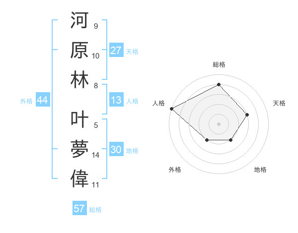 河原林 叶夢偉さんを姓名の画数から五運を鑑定