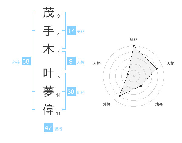 茂手木 叶夢偉さんを姓名の画数から五運を鑑定