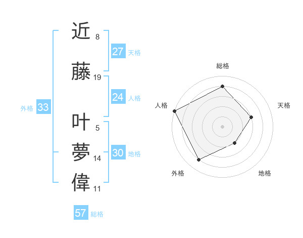 近藤 叶夢偉さんを姓名の画数から五運を鑑定
