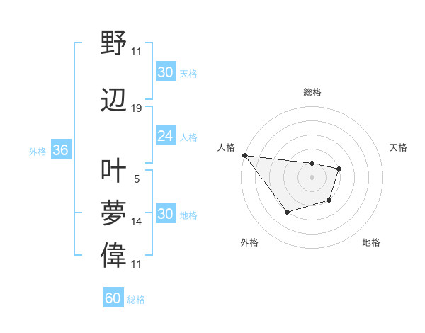 野辺 叶夢偉さんを姓名の画数から五運を鑑定