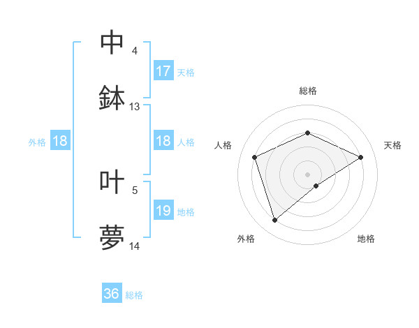 中鉢 叶夢さんの天格は17画の4点!