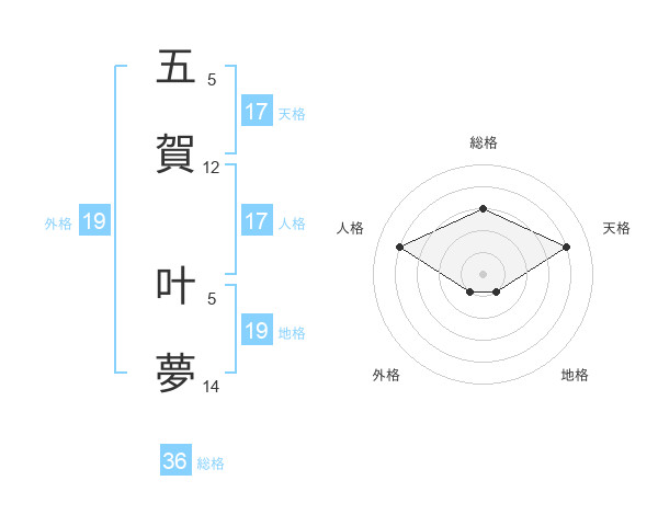 五賀 叶夢さんを姓名の画数から五運を鑑定
