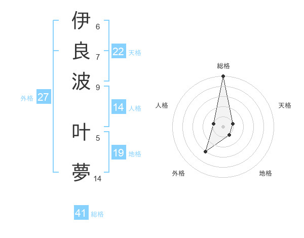 伊良波 叶夢さんの総格は41画の5点