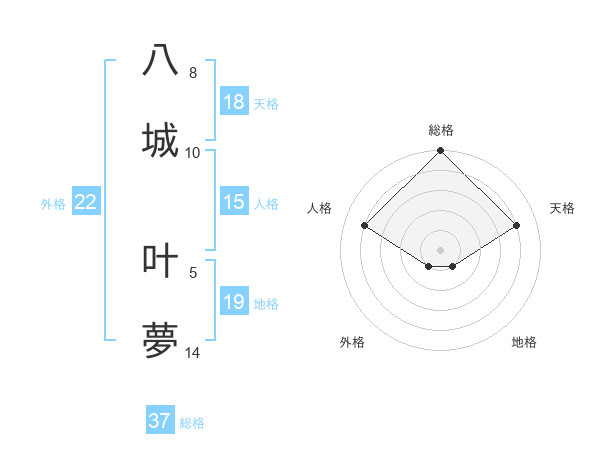 八城 叶夢さんの総格は37画の5点!