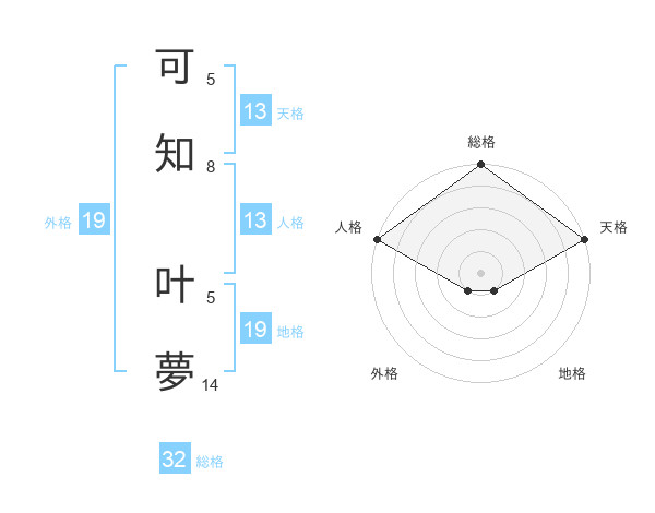 可知 叶夢さんの天格は13画の5点!