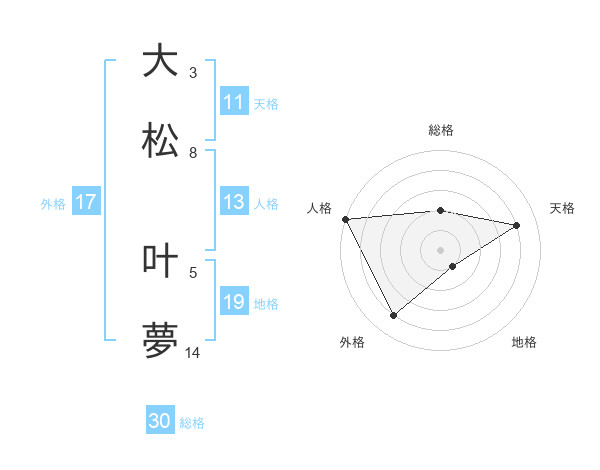 大松 叶夢さんの外格は17画の4点!