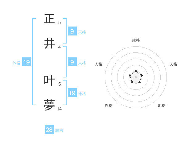 正井 叶夢さんの外格は19画の1点!