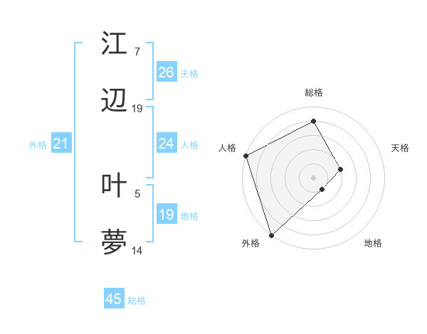 江辺 叶夢さんの総格は45画の4点!