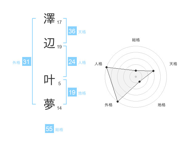 澤辺 叶夢さんを姓名の画数から五運を鑑定