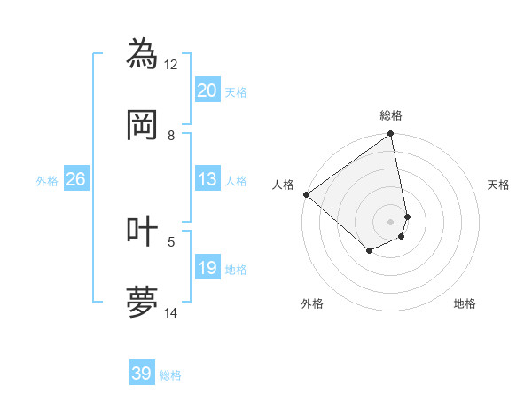 為岡 叶夢さんの総格は39画の5点!