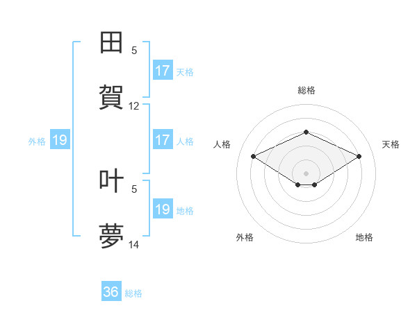 田賀 叶夢さんの天格は17画の4点!