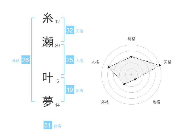 糸瀬 叶夢さんの総格は51画の3点!