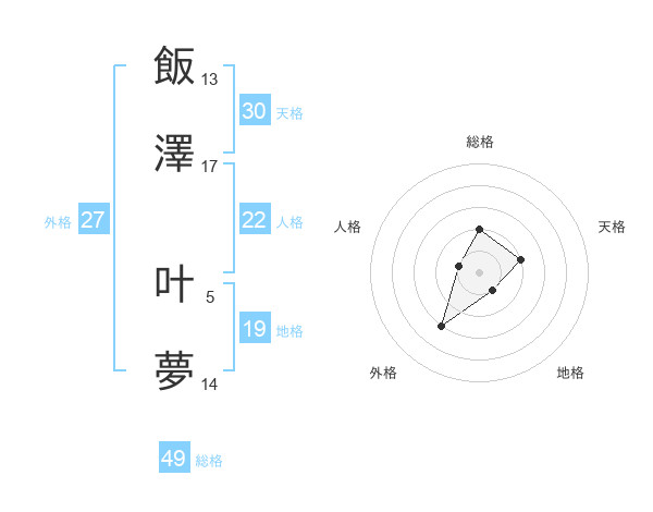 飯澤 叶夢さんの総格は49画の2点!
