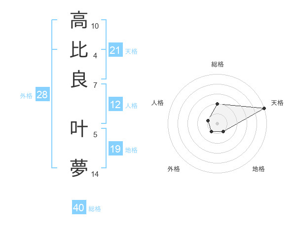 高比良 叶夢さんの天格は21画の5点!