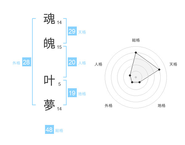 魂魄 叶夢さんの天格は29画の4点!