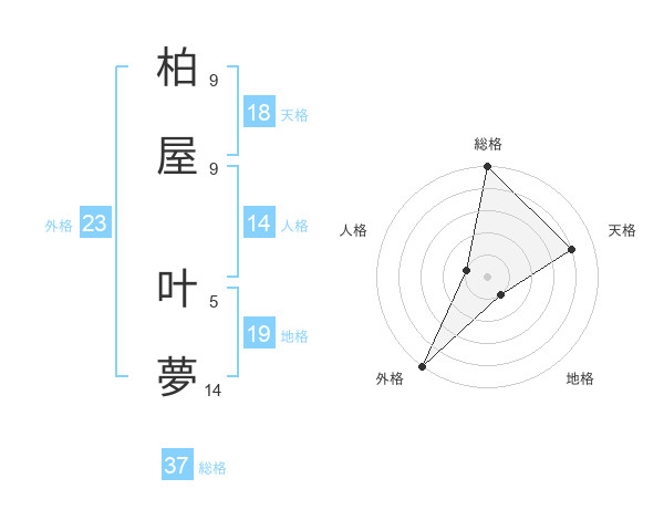 柏屋 叶夢さんの総格は37画の5点!
