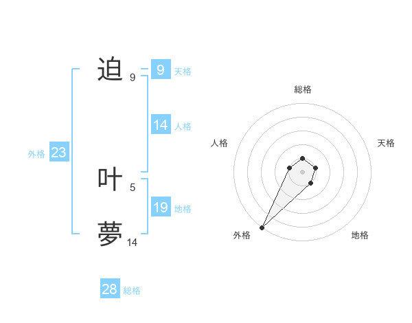 迫 叶夢さんの外格は23画の5点!
