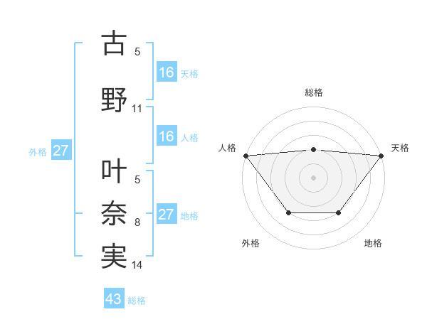 古野 叶奈実さんを姓名の画数から五運を鑑定