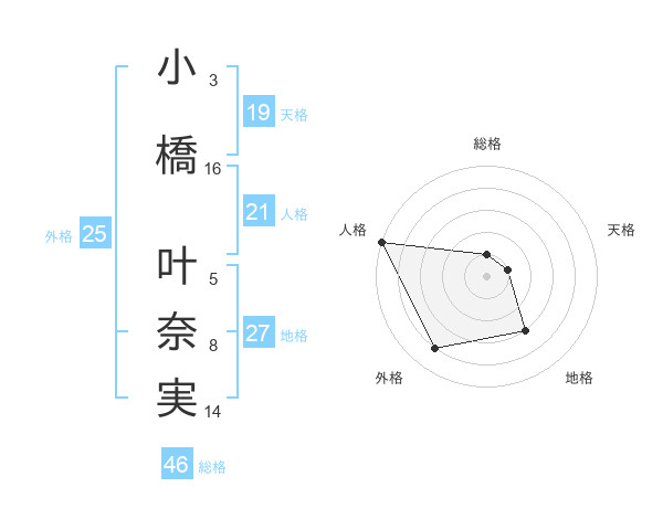 小橋 叶奈実さんを姓名の画数から五運を鑑定