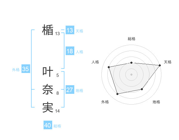 楯 叶奈実さんを姓名の画数から五運を鑑定