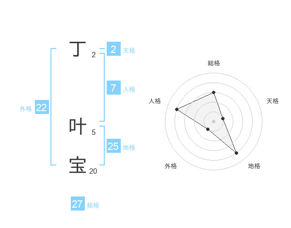 丁 叶宝さんの総格は27画の3点!