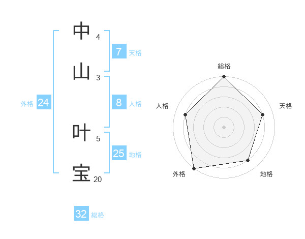 中山 叶宝さんの総格は32画の5点!