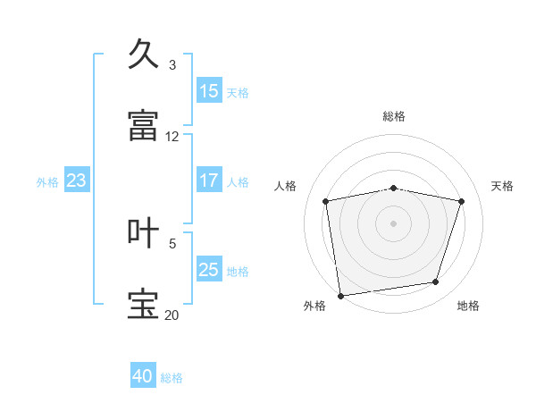 久富 叶宝さんの外格は23画の5点!