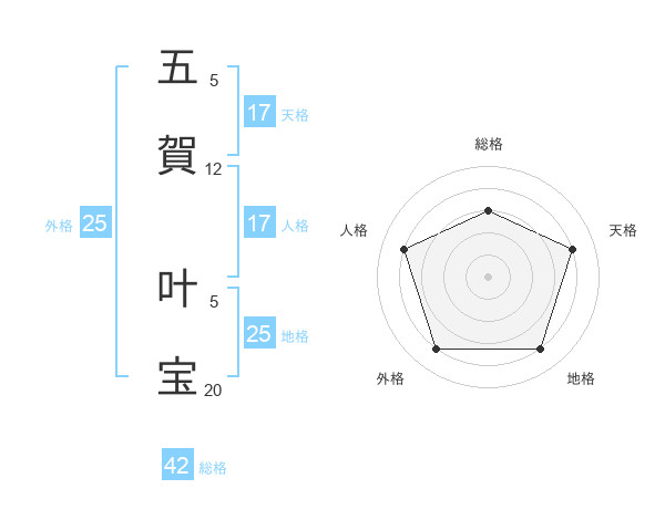 五賀 叶宝さんを姓名の画数から五運を鑑定