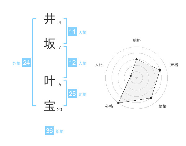 井坂 叶宝さんを姓名の画数から五運を鑑定