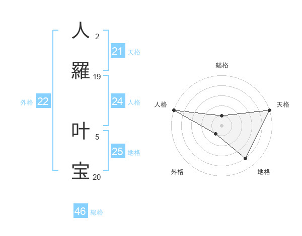 人羅 叶宝さんの総格は46画の1点!