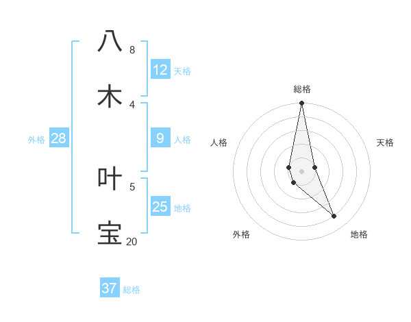 八木 叶宝さんを姓名の画数から五運を鑑定
