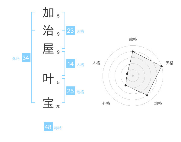 加治屋 叶宝さんの天格は23画の5点