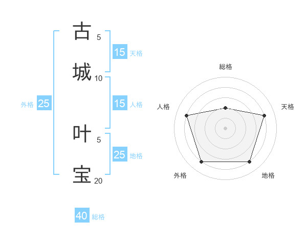 古城 叶宝さんの総格は40画の2点!