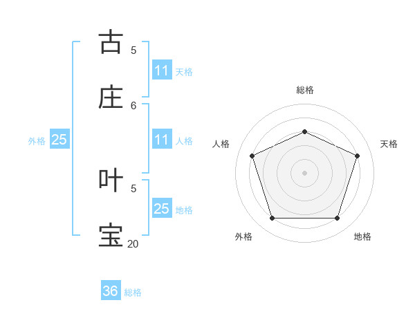 古庄 叶宝さんの天格は11画の4点!