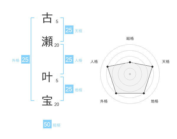 古瀬 叶宝さんを姓名の画数から五運を鑑定