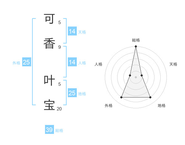 可香 叶宝さんの総格は39画の5点!