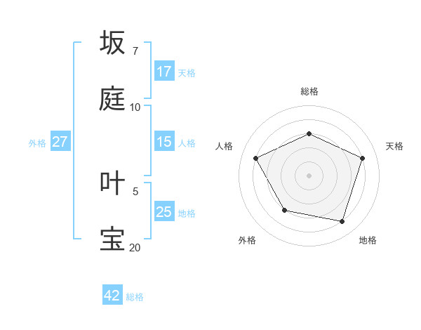 坂庭 叶宝さんを姓名の画数から五運を鑑定