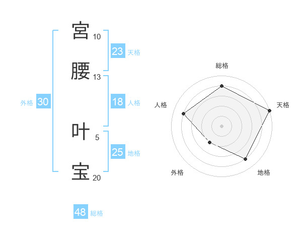 宮腰 叶宝さんの天格は23画の5点!
