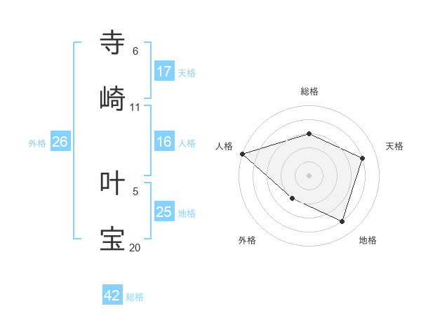 寺崎 叶宝さんの天格は17画の4点!