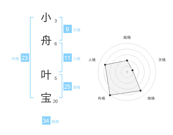 小舟 叶宝さんの外格は23画の5点!