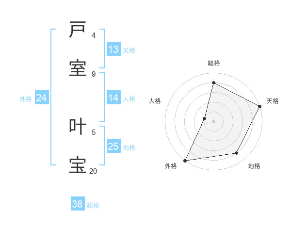 戸室 叶宝さんの総格は38画の4点!