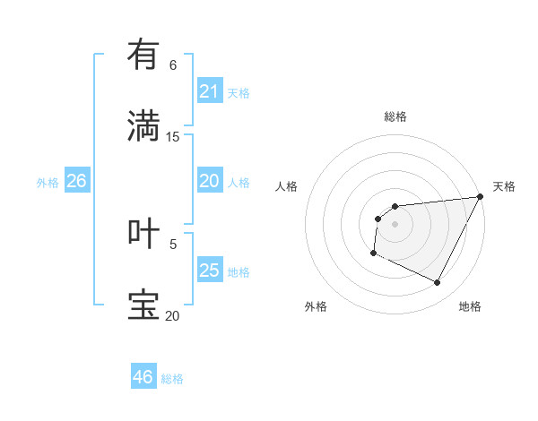 有満 叶宝さんの天格は21画の5点!