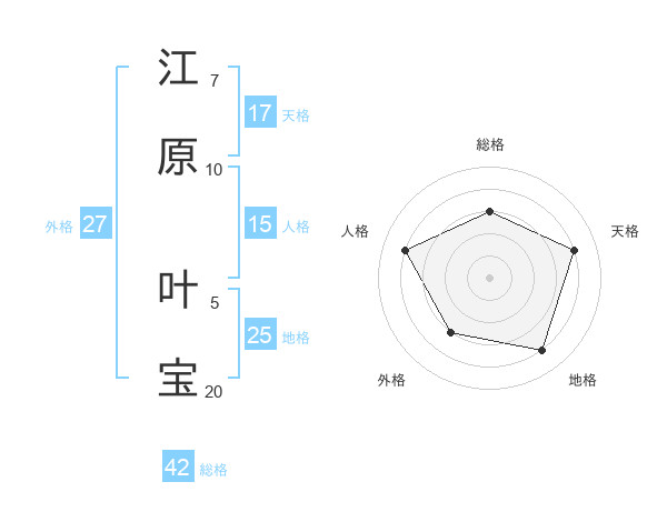 江原 叶宝さんを姓名の画数から五運を鑑定