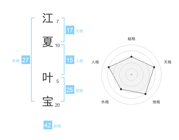江夏 叶宝さんを姓名の画数から五運を鑑定