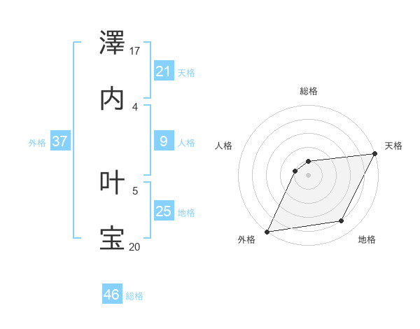 澤内 叶宝さんの天格は21画の5点!