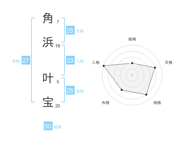 角浜 叶宝さんを姓名の画数から五運を鑑定